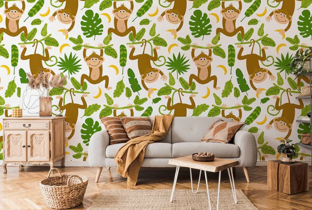 - Singes & lianes : esprit ludique garanti ; voir Tapisserie mur de singe.