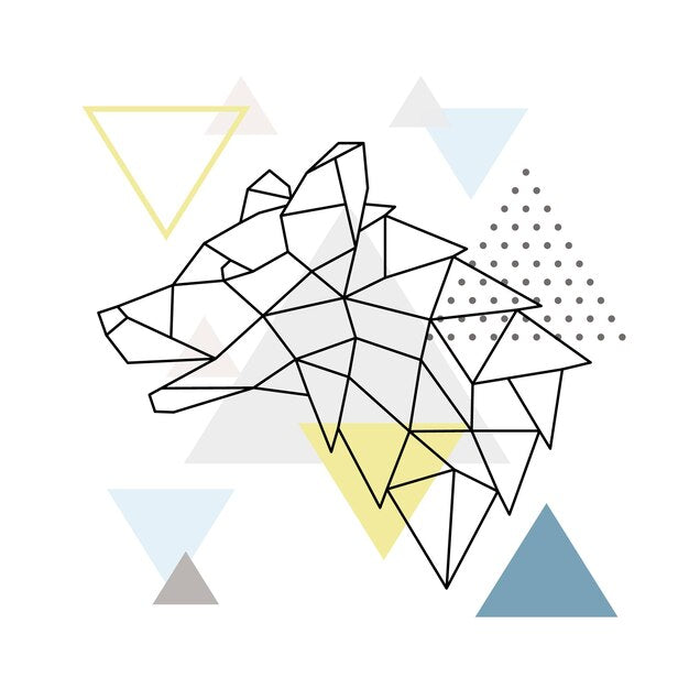 Pénétrez dans une ère de décoration où la nature se fond avec l'art moderne. Notre papier mural introduit le loup, majestueux et indomptable, célébré par des formes triangulaires précises. Les teintes douces et le jeu de formes géométriques apportent une touche de modernité à votre espace, tout en conservant un aspect chaleureux et invitant.