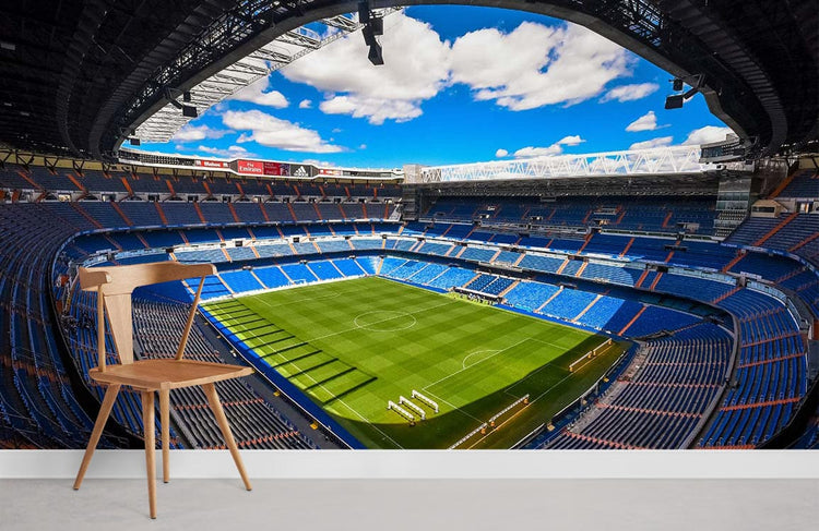 Papier peint mural du stade Bernabeu III dans un salon moderne avec murale sportive