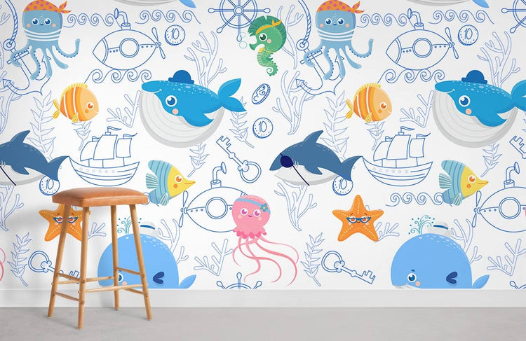 Papier peint mural du monde marin en dessin animé