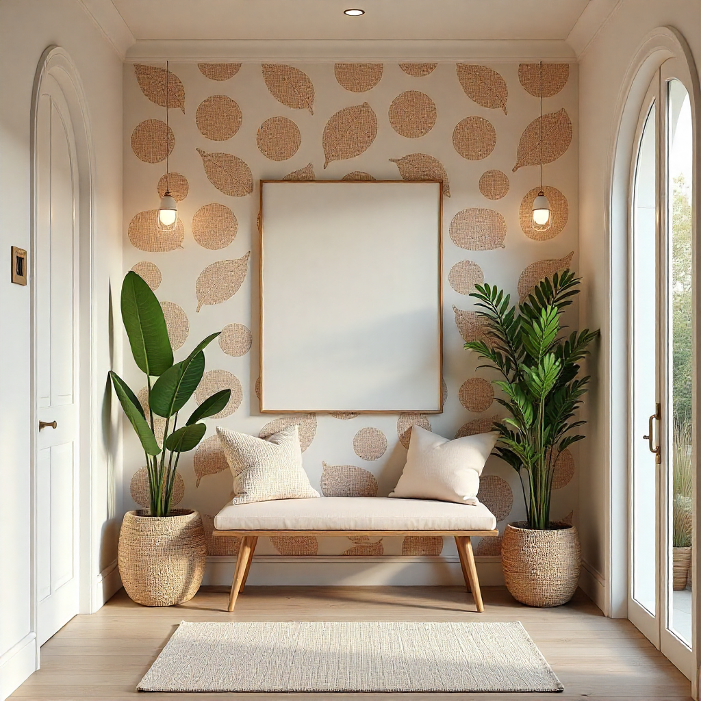 Contrairement à un style strictement minimaliste, le bohème assume le mix & match : un mur panoramique poétique, un sol en bois clair, un tapis tissé, des luminaires en fibres… L’idée n’est pas la perfection mais l’équilibre. Pour un rendu délicat, associez un motif végétal doux à une matière texturée. Les effets « enduit » et « chaux brossée » se marient particulièrement bien avec des imprimés ornementaux discrets.