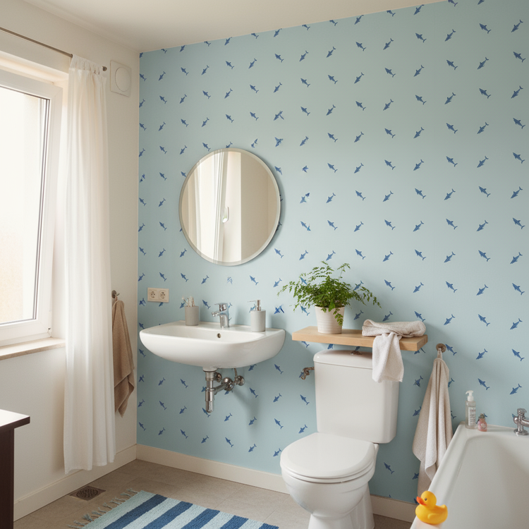 Plongez au cœur d'un univers marin apaisant et ludique avec ce papier peint unique, conçu pour éveiller l'imagination des petits et charmer les grands. Inspiré par la majesté des océans, ce motif sans couture célèbre l'élégance du requin blanc, non pas comme une créature effrayante, mais comme un personnage attachant, stylisé avec la douceur et la simplicité qui caractérisent le design scandinave.