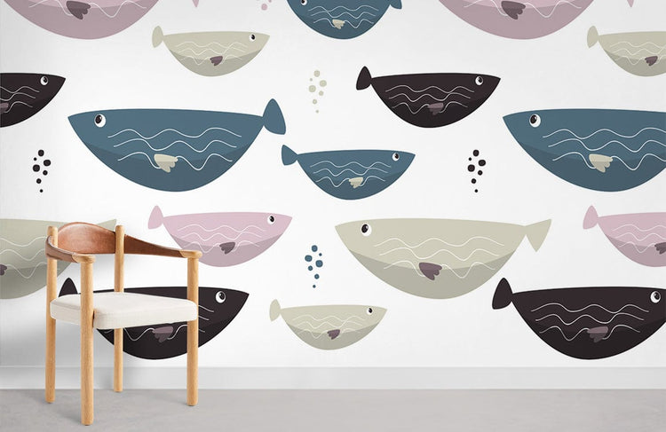 Papier peint mural de poissons colorés dans une nurserie avec papier peint à motif de baleines