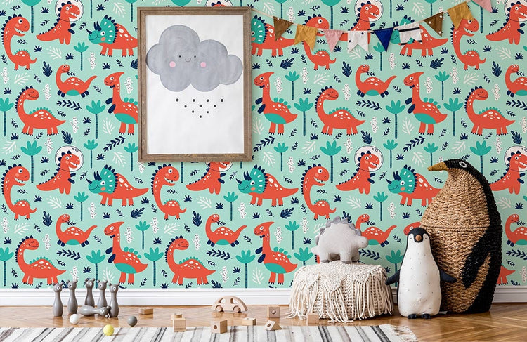 Papier peint mural dinosaure pour chambre d’enfant, motif ludique et coloré