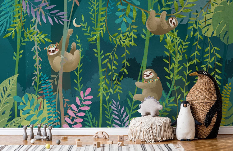 Papier peint mural Paresseux sur lianes dans une jungle luxuriante
