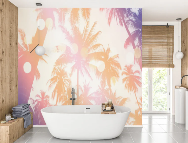 - Papier peint palmier : décor à motifs de palmier réaliste ou stylisé.