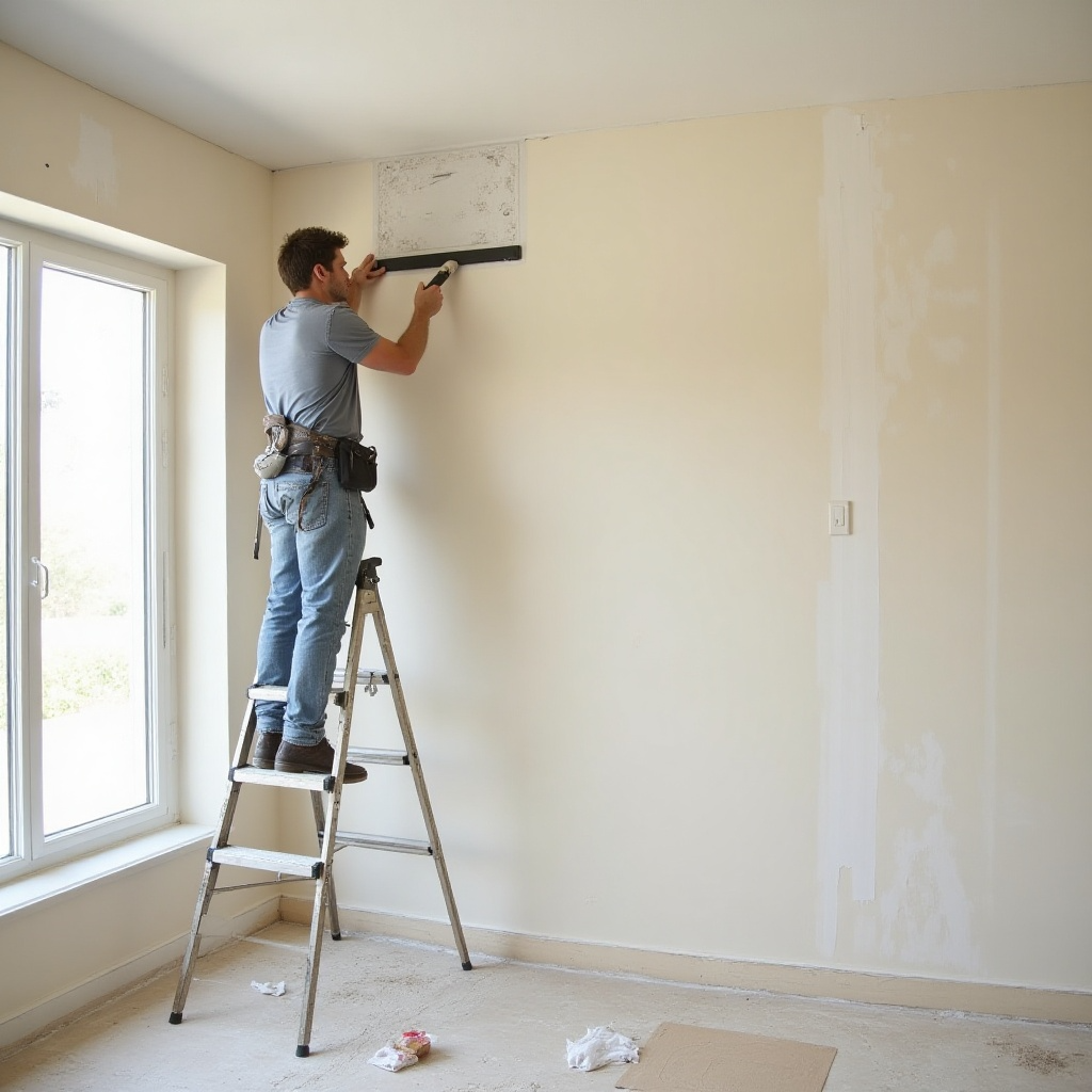 - Préparation : lessivez le mur, rebouchez les trous, poncez, dépoussiérez.