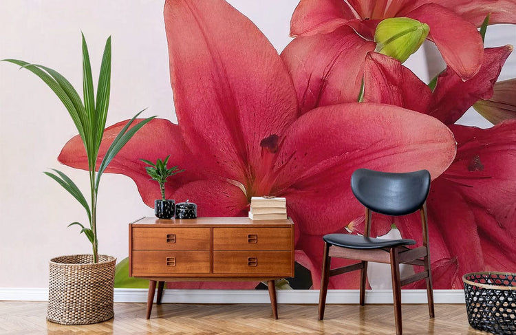 Papier peint mural avec fleurs de lys rouges vibrantes en pleine floraison