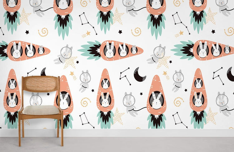 Voyage cosmique avec le peint mural lapin et fusées carottes