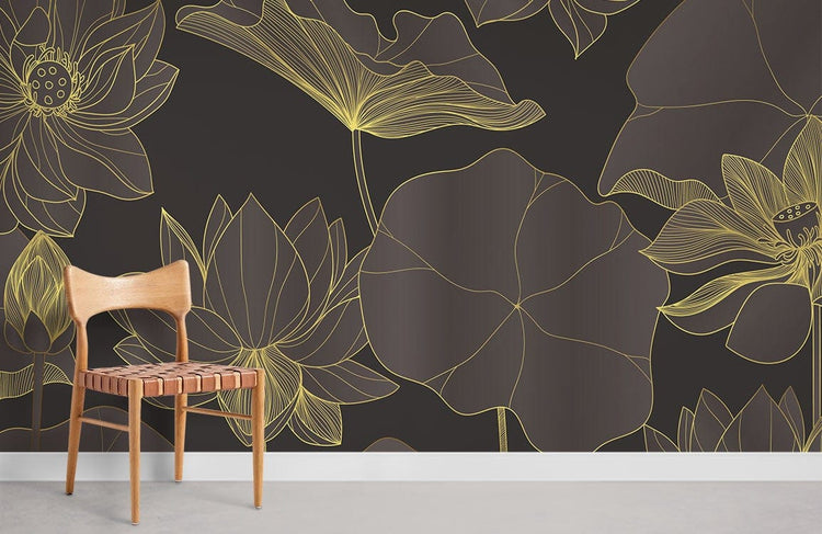 Papier Peint Mural Lotus Doré Sombre Élégance et Mystère