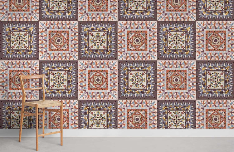 Papier peint mural motif angulaire actinomorphe aux teintes terreuses