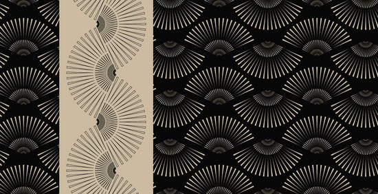 Peinture murale d’art abstrait avec motif fan Art Deco en noir et beige