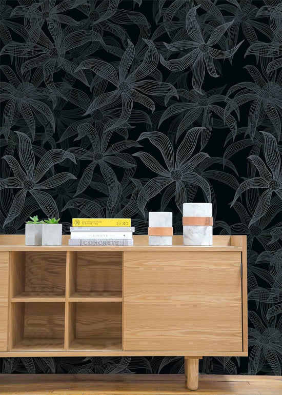 Peint mural d’art linéaire floral pour un salon moderne et serein