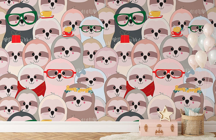 Papier peint paresseux roses rêveurs et douceur panoramique