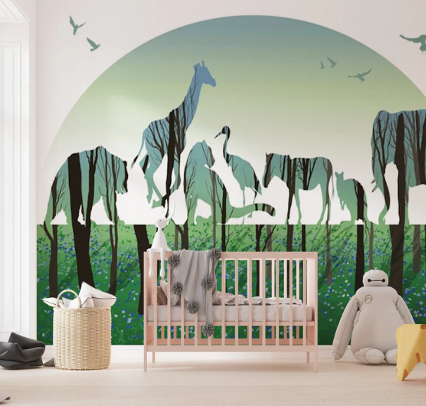 Les modèles de papier peint panoramique bébé s’accordent très bien avec un thème animaux épuré.