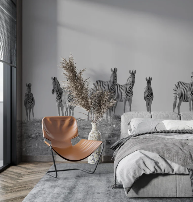 | Zèbre | Papier peint zèbre | Graphique noir & blanc | Bureau, couloir | Accents noir mat |