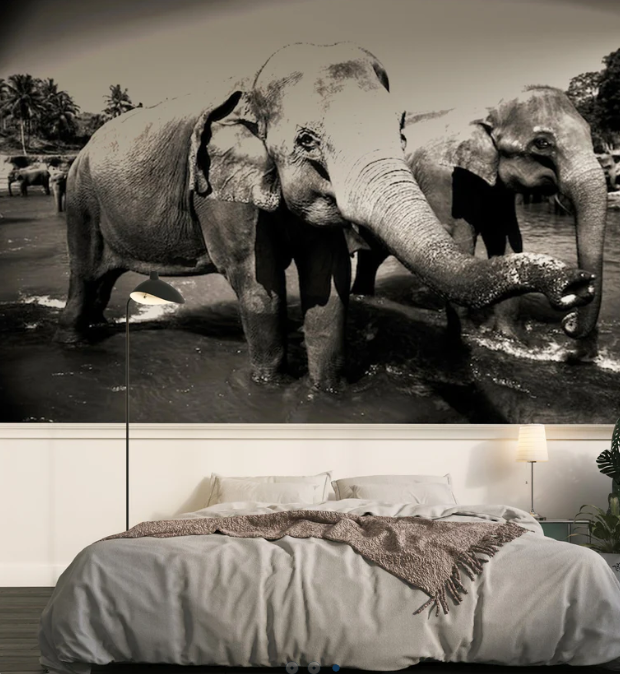 Choisissez un panoramique éléphant en tête de lit pour une atmosphère paisible.