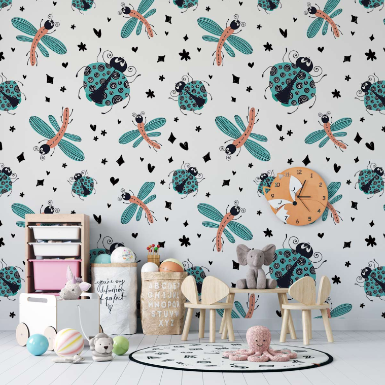 Les associations papillons et fleurs composent un décor vivant : corolles, herbes légères, jardin qui s’éveille. Le rendu est idéal pour une ambiance douce et joyeuse, parfaite dans une chambre d’enfant comme dans une suite parentale.