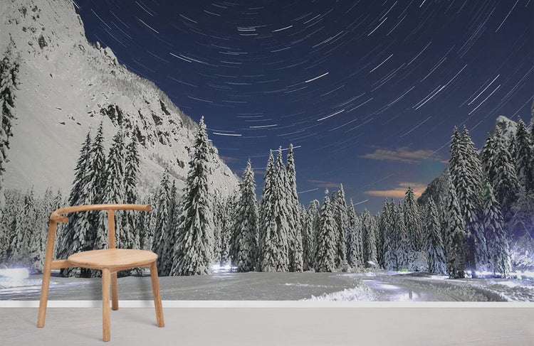 Papier peint panoramique paysage enneigé élégance bois et hiver