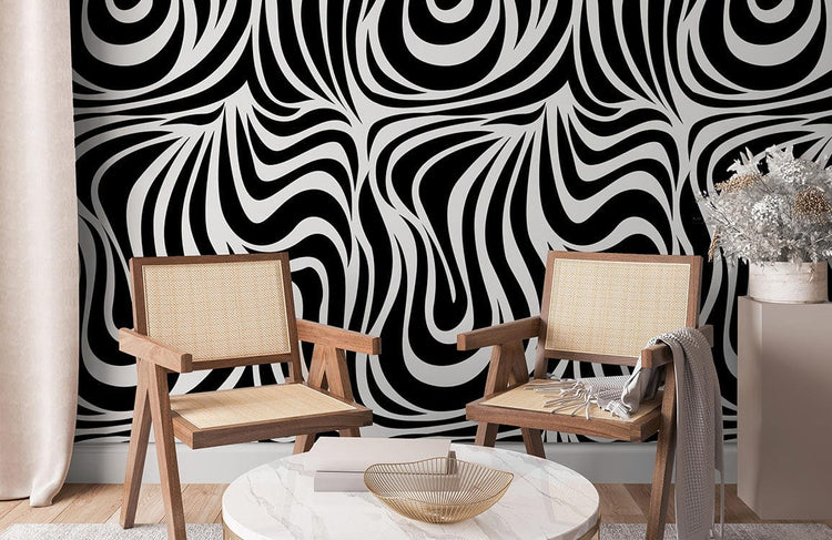 Papier peint mural à motif torsadé de fourrure en noir et blanc, décoration tendance