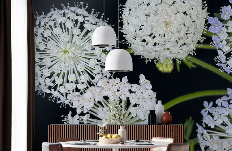 Papier peint panoramique avec clusters de fleurs de Queen Anne’s Lace en fresque