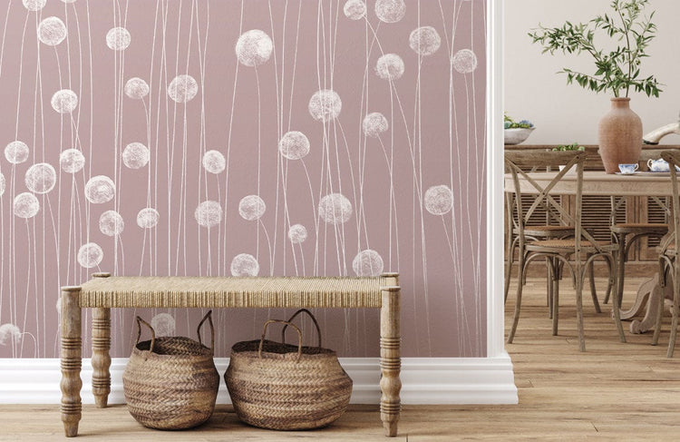 Photo du papier peint mural pissenlit étoilé rose avec motif de pissenlit en rose pâle
