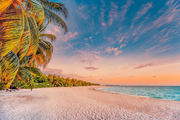 Papier peint exotique de Levé de Soleil Orange sur Mer Calme avec plage tropicale
