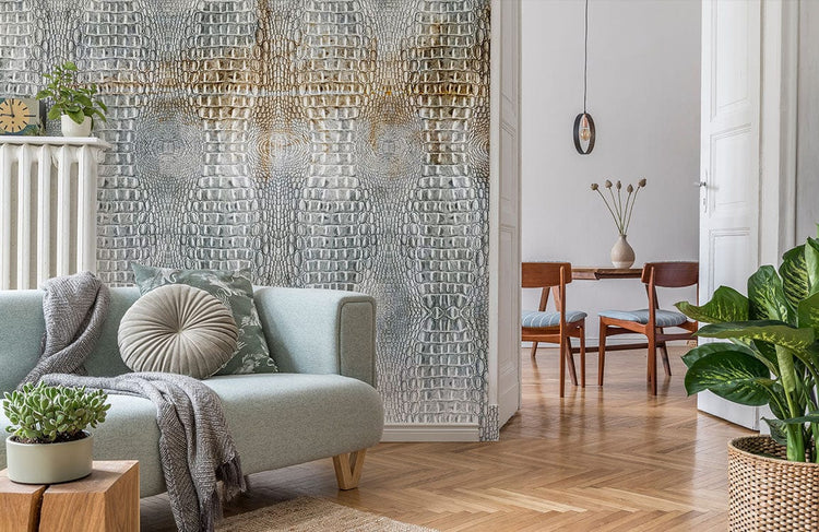 Papier peint mural en peau de python gris tacheté pour entrée avec texture crocodile