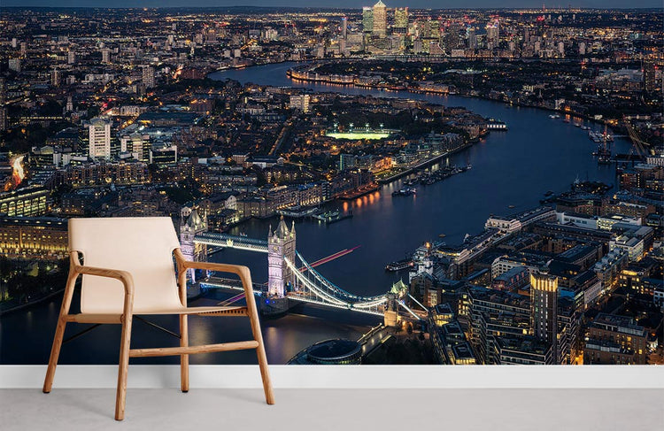 Murale de papier peint panoramique sur mesure avec vue aérienne de la Tamise à Londres