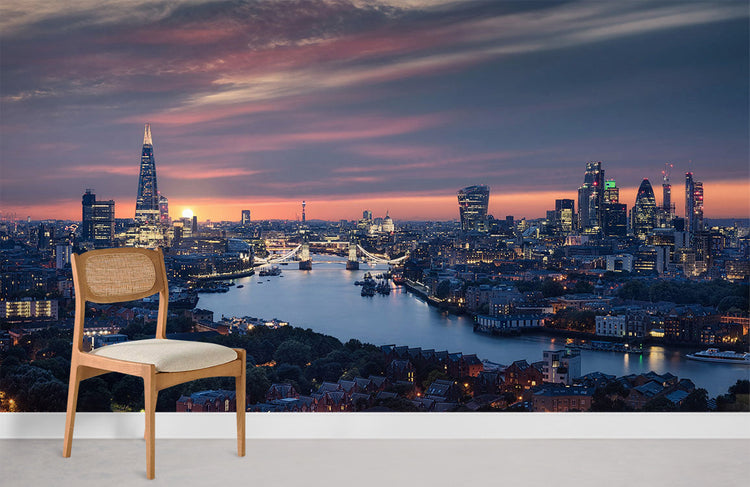 Papier peint mural avec vue sur Londres au coucher du soleil, panorama urbain
