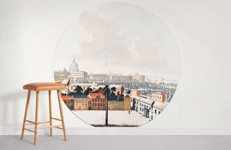 Papier peint mural rond avec vue sur Rome, décor mural paysage urbain