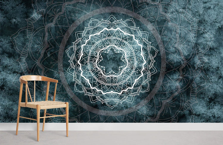 Peinture murale motifs mandala Jasper avec fond teal pour papier peint mural motifs