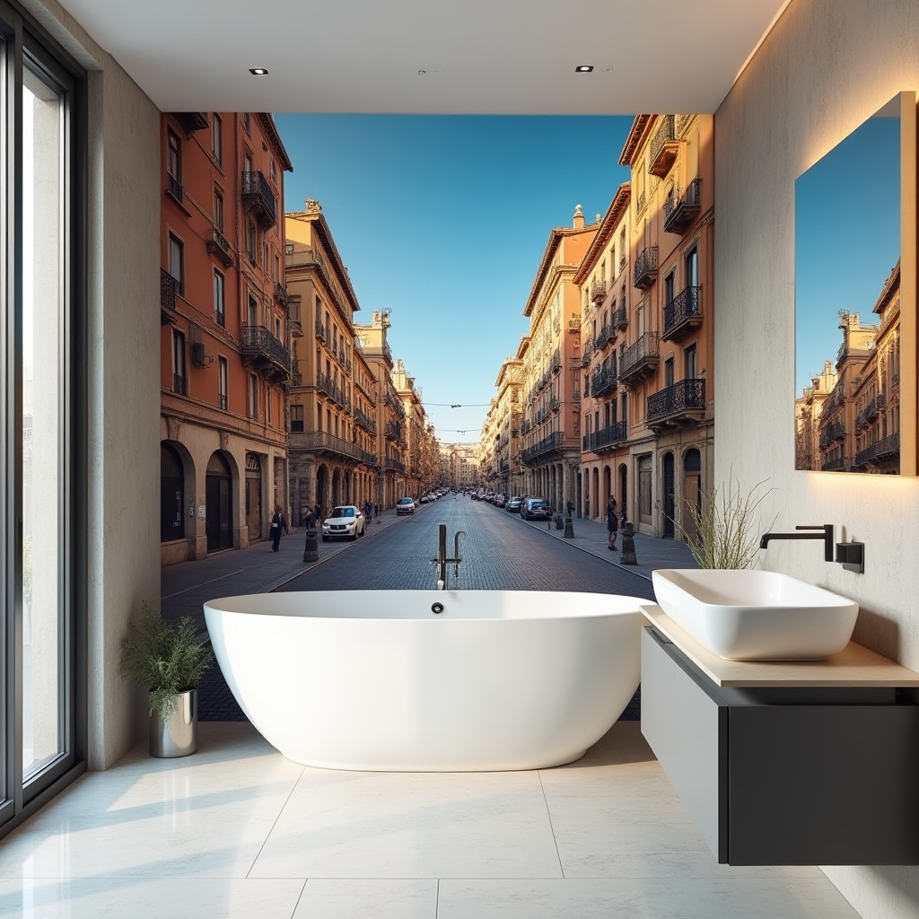 | Peint panoramique urbain | Couloir | Rythme visuel, effet horizon |