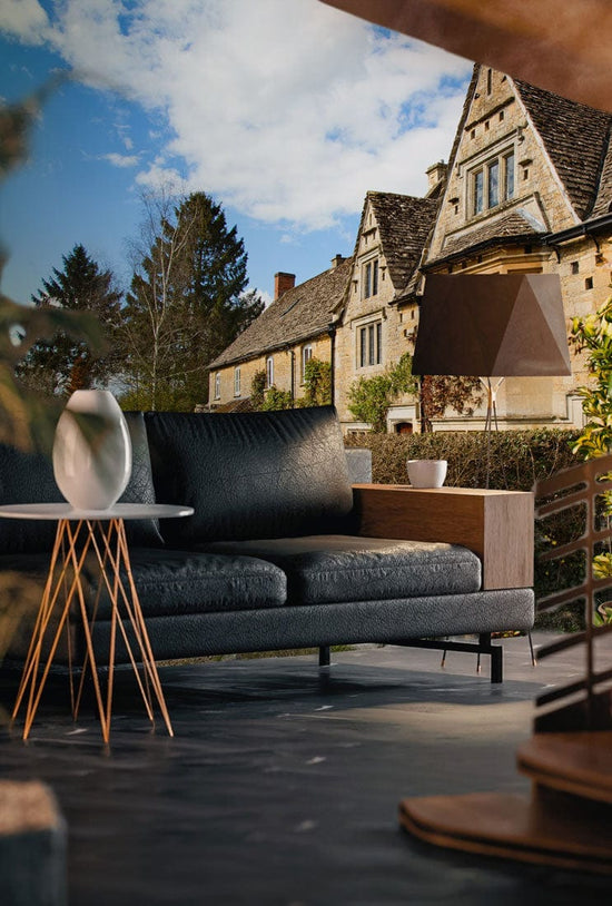 Banquette en cuir marron avec pieds noirs pour Murale de Papier Peint Ville Florale