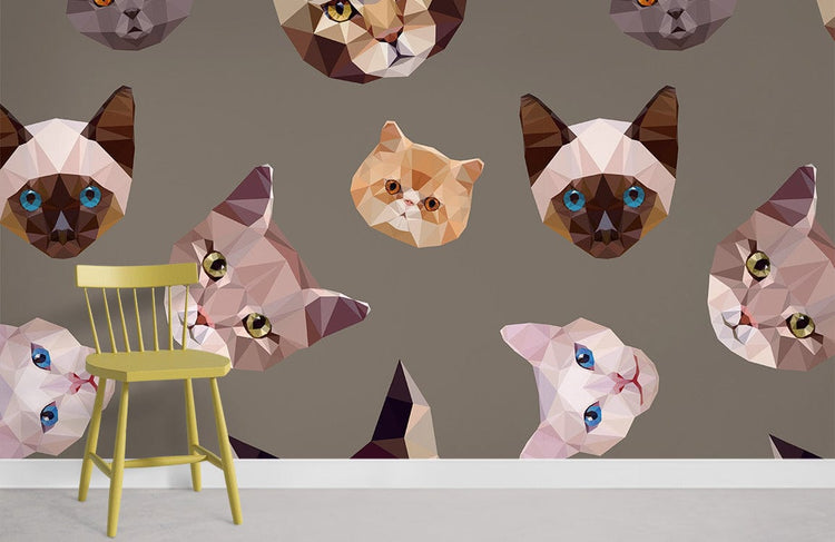Pattern de visages de chats polygonaux sur papier peint mural artistique