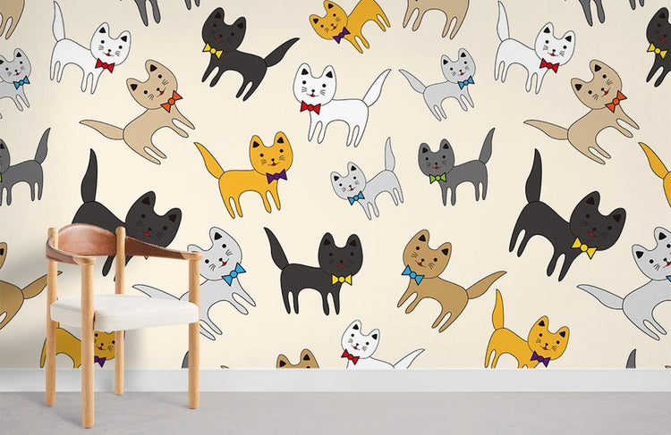 Papier peint mural Nœud Papillon et Chats élégance féline sur vos murs