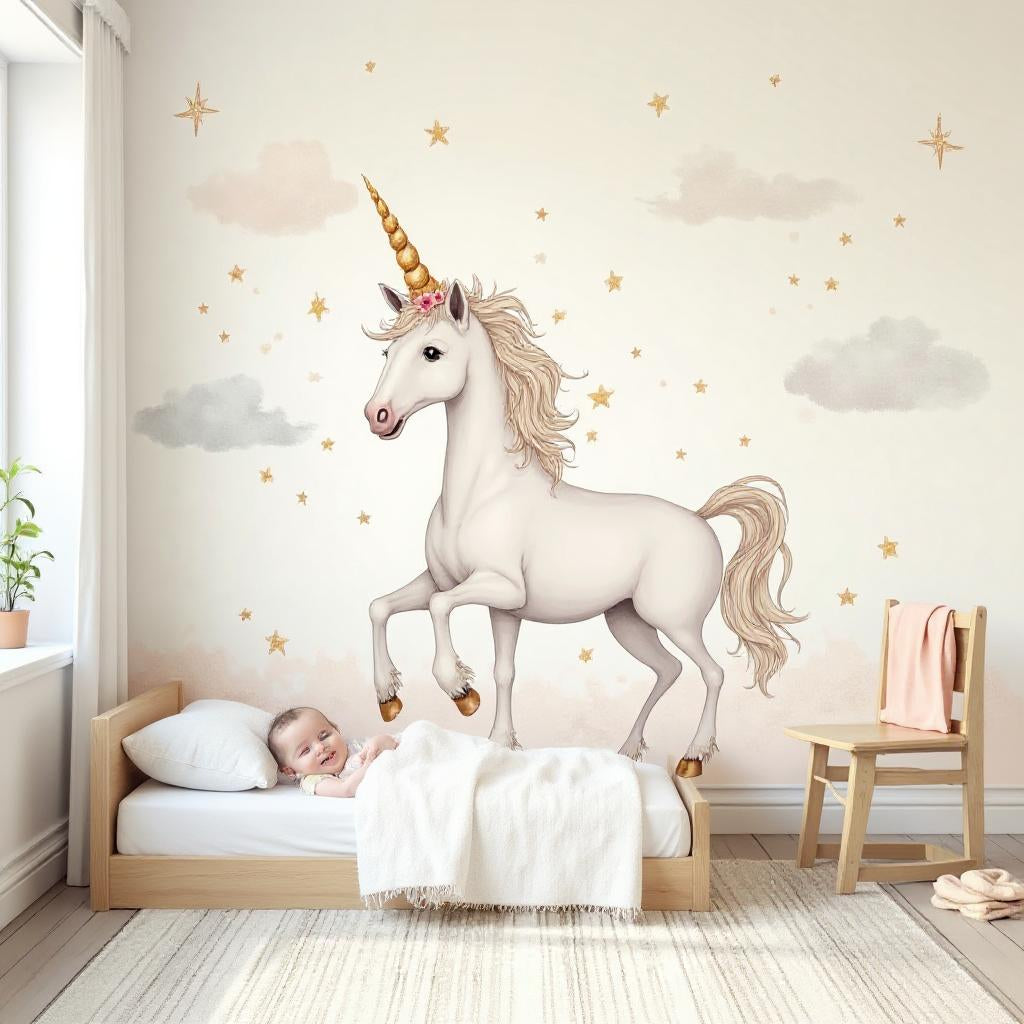 | Papier peint licorne intissé | Toile facile à appliquer, lavable, impression haute qualité | Chambre d’enfant, bureau ou espace de jeu |