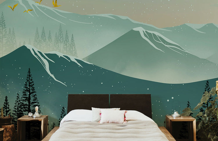 Papier peint mural montagne féerique dans une chambre avec murale nature féerique
