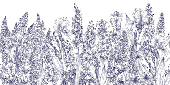 Plongez au cœur d'un paysage enchanté avec cette fresque murale captivante, une invitation à la sérénité directement inspirée des jardins luxuriants où s'épanouissent gracieusement le platycodon, la campanule, le delphinium, le lupin et l'iris.