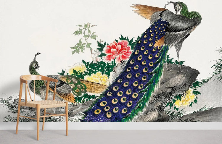 Papier peint mural paon et pivoine