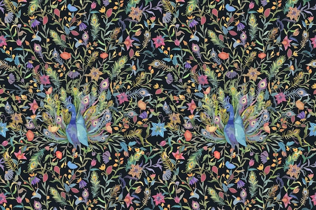 Papier peint paon et fleurs en aquarelle pour un décor mural coloré et vibrant
