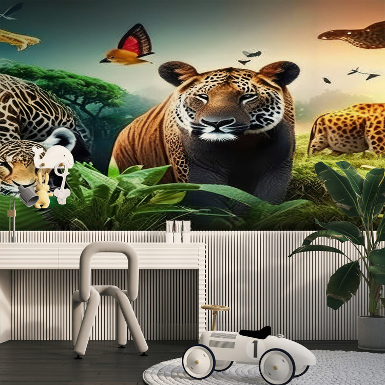 Papier peint faune avec créature hybride jaguar-tigre dans jungle chez Mr Papier