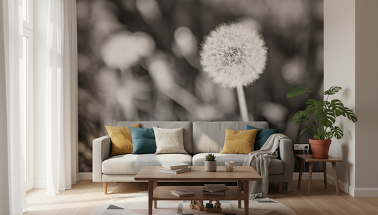 Imaginez ce décor mural majestueux dans votre intérieur. Dans un salon lumineux, il devient la pièce maîtresse, insufflant une atmosphère de sophistication décontractée. Les fibres délicates du pissenlit, magnifiées par la mise au point sélective, captent la lumière naturelle, créant des jeux d'ombres et de reflets qui évoluent au fil de la journée. Les tons neutres du fond se marient harmonieusement avec des meubles contemporains aux lignes épurées ou des textiles doux et texturés, offrant un espace accueillant et visuellement stimulant.