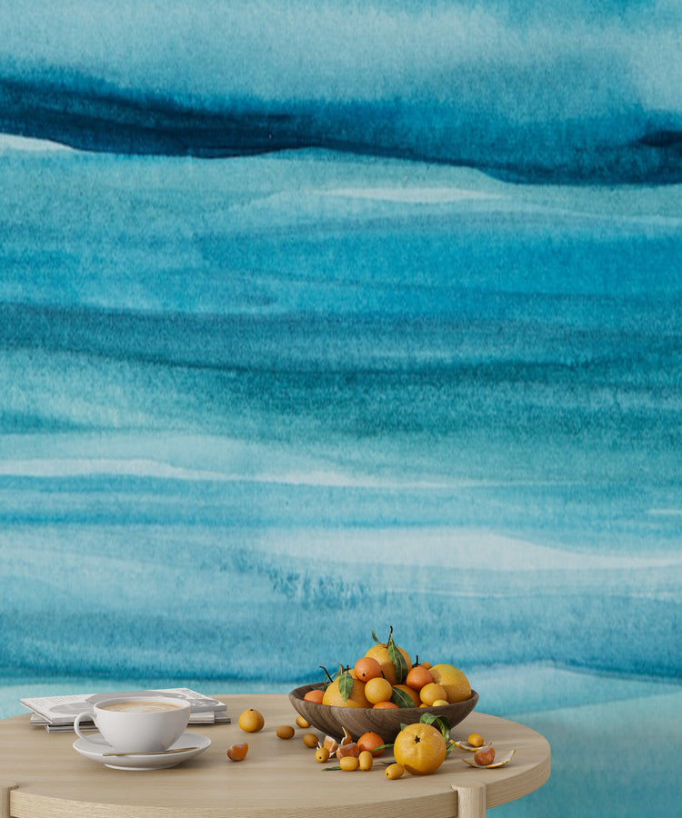Laissez le fond d’aquarelle bleu ombré introduire une dimension de calme et de beauté abstraite, évoquant un horizon lointain où ciel et mer fusionnent en une seule et même toile de fond. Invitez le charme subtil et l’esprit créatif qu’offre ce design mural de choix dans votre univers quotidien.
