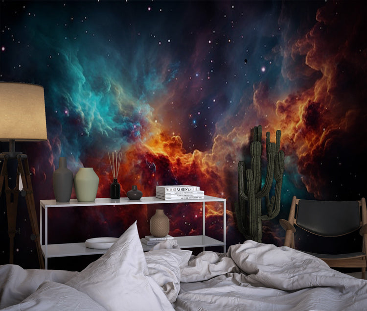Chez Mr Papier Peint, nous vous invitons à transfigurer votre espace avec une fantaisie galactique, où chaque fragment est une échappée belle dans l'immensité sidérale. La quintessence des nébuleuses et la splendeur des astres lointains se fondent dans un ballet cosmique sous vos yeux. Une fresque murale qui évoque l'extraordinaire avec ses nuances iridescentes, invitant à une rêverie interstellaire.