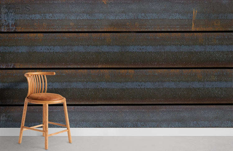 Murale de papier peint à motif de rail en fer rustique avec poutres en acier rouillées
