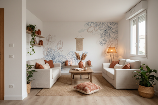 Nos papiers peints sont imprimés en haute définition, avec des encres à base d’eau sans solvants ni odeurs. Le tout est certifié sans COV, pour un intérieur sain et une planète qui respire mieux 🌿. Les supports sont également issus de matériaux durables, parce que l’écologie, ce n’est pas qu’un motif à la mode.
