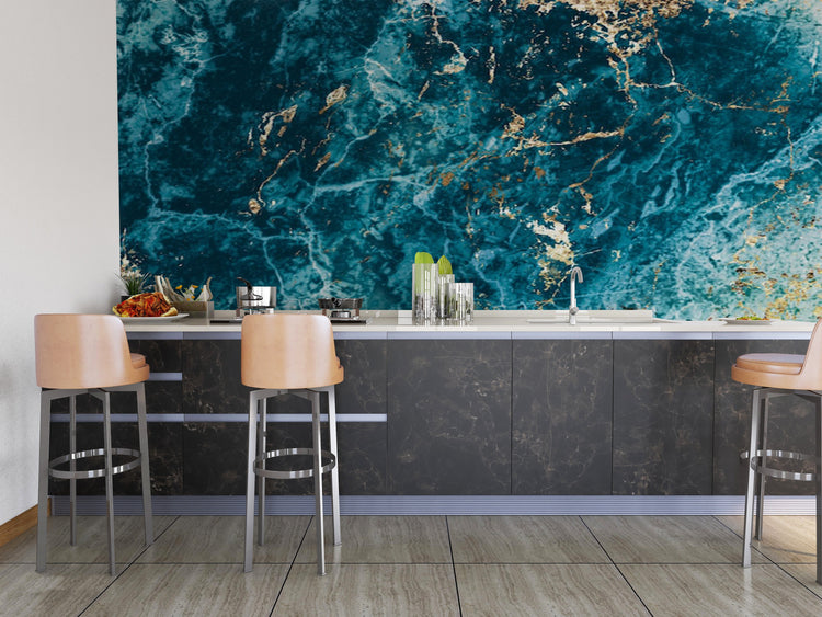 Revêtement Mural Effet Marbré Azur et Or – Raffinement & Distinction Sublimez votre intérieur avec une touche de noblesse grâce à notre revêtement mural effet marbré aux nuances azur et dorées.