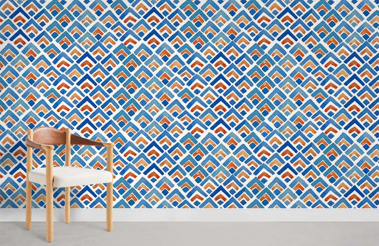 Papier peint mural avec motif carré vectoriel en tissu bleu et orange