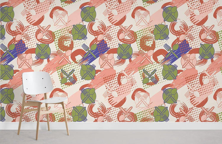 Papier peint mural œuvre d’art Vaisselle blanche et élégance boisée